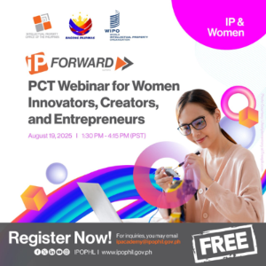 As part of its overall IP Education and Awareness Program, the Intellectual Property Office of the Philippines (IPOPHL), through its Bureau of Patents and IP Academy, in cooperation with the World Intellectual Property Organization (WIPO), will be conducting the IP Forward >> PCT Webinar for Women Innovators, Creators, and Entrepreneurs on August 19, 2025, from 1:00 PM - 4:30 PM (Philippine Time) via Zoom.